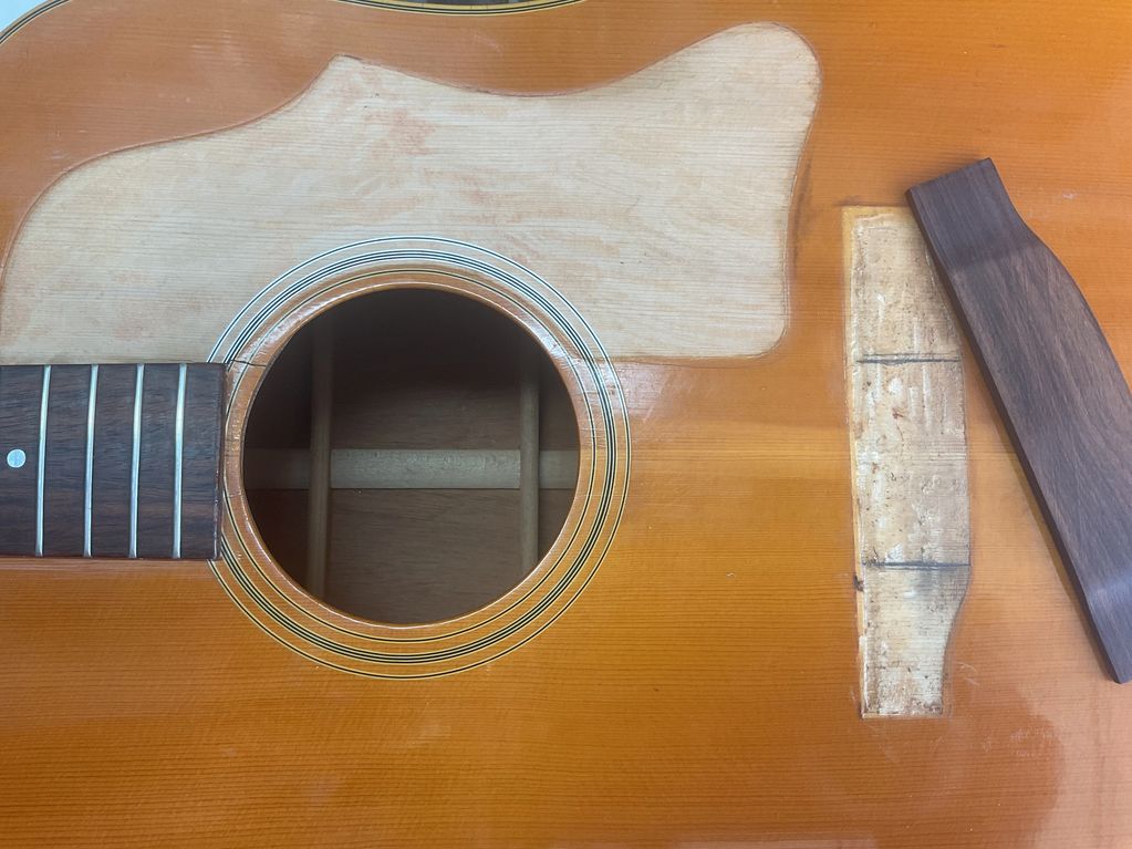 1970-80’s Guild making a new over-sized bridge and backplate and partial top replacement.